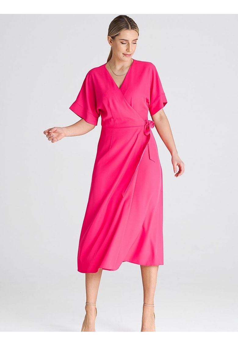- Висококачествени материи – Рокля кимоно ръкави – връзка на талията – полиестер – розово – полиестер Figl е продукт изработен от най-добрите материи, осигуряващи комфорт и стил.