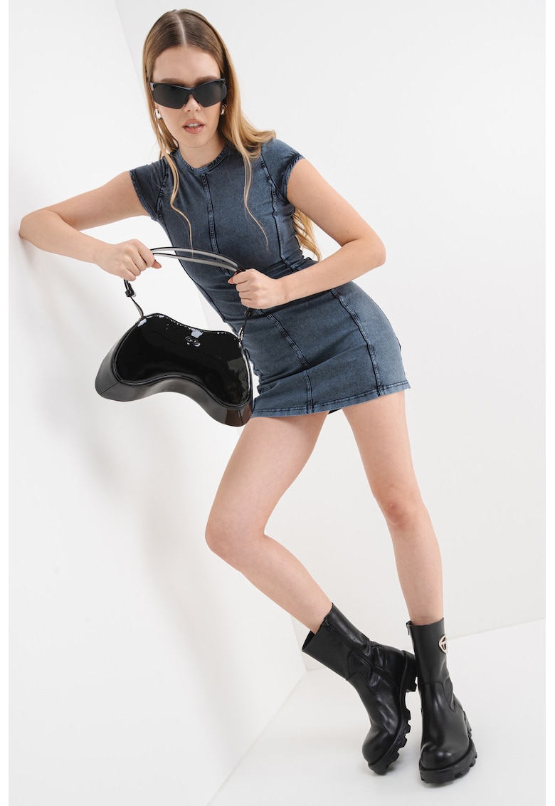 Рокля от шамбре с къси ръкави – Ултрамарин синьо/Прашно синьо Diesel