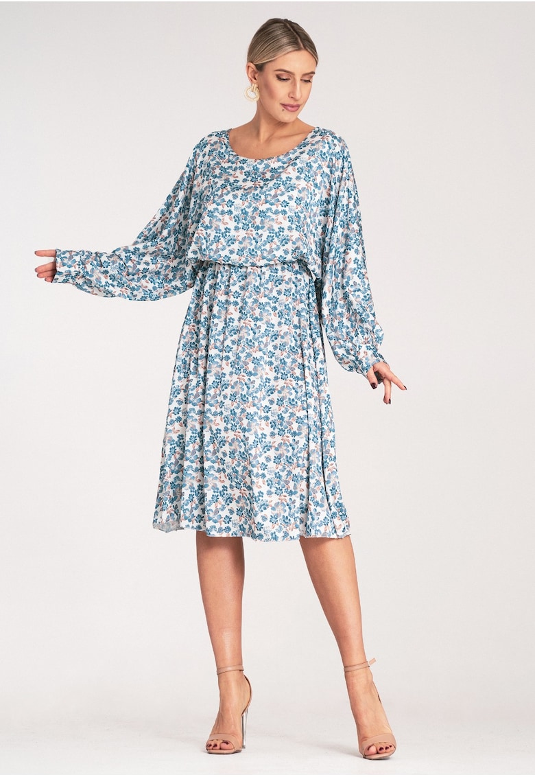 Относно Рокля полиестер – синьо – бяло – флорални мотиви – SM на Figl