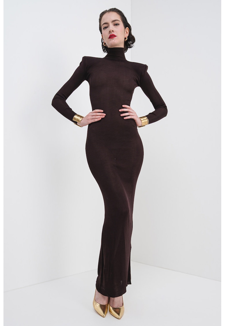 Характеристики Цвят: тъмнокафяв Стил: елегантен Материал: вискоза Кройка: вталена Дължина: дълга Дължина ръкав: дълъг ръкав Състав Външна част: 100% вискоза Информация за модел Моделът е облечен с размер XS. Размер на модела: 174 cm височина – 83 cm Гръдна обиколка – 59 cm Талия – 88 …