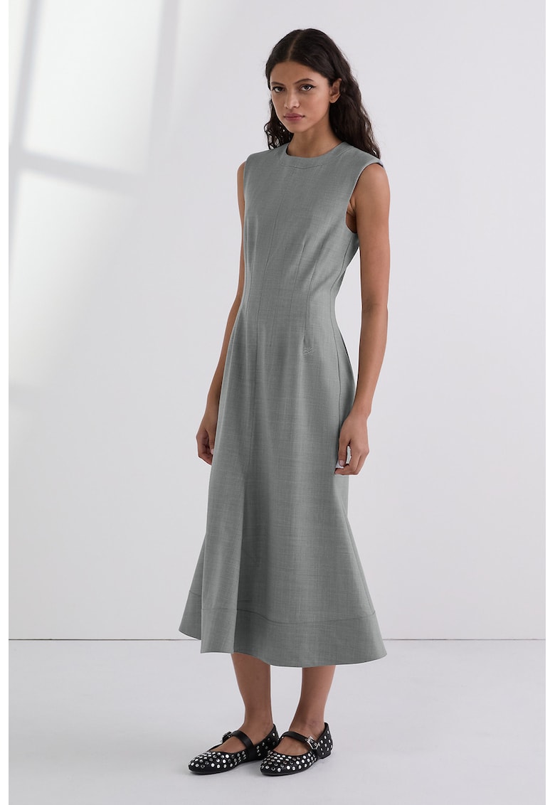 Характеристики Цвят: светло сив Стил: ежедневен Материал: вълна Принт: без принт Кройка: клош Дължина: средна Деколте: обло Дължина ръкав: без ръкав Състав Външна част: 66% вълна – 28% полиестер – 6% еластан