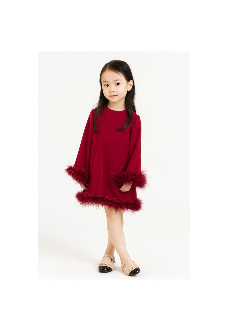 Рокля с дълги ръкави и щраусови пера BALOU