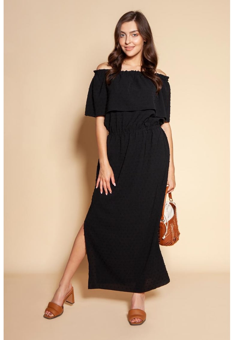 Характеристики Цвят: черен Стил: ежедневен Материал: полиестер Принт: без принт Кройка: голи рамене Дължина: дълга Талия: стандартна