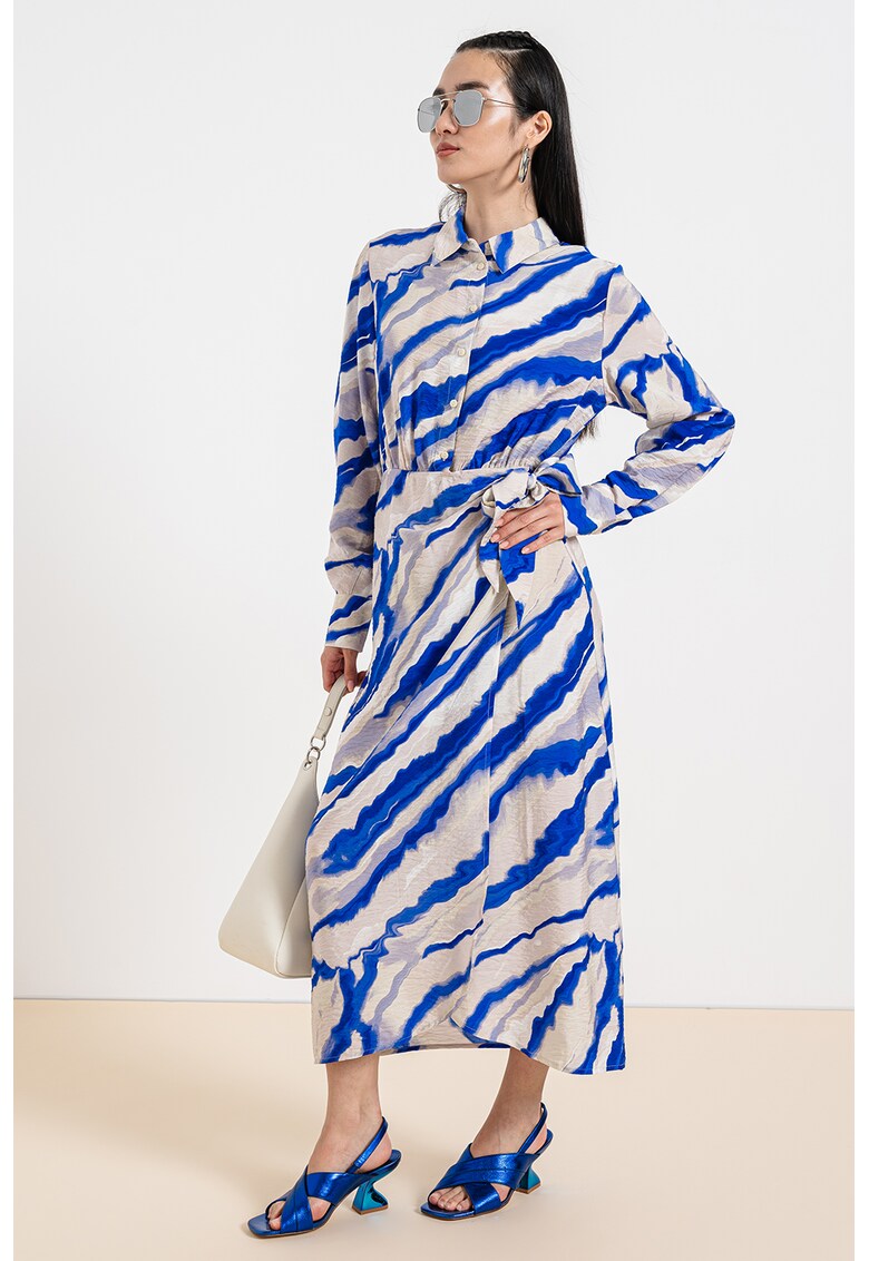 - Висококачествени материи – Рокля тип риза с десен – Светло сив/Син Vila е продукт изработен от най-добрите материи, осигуряващи комфорт и стил.