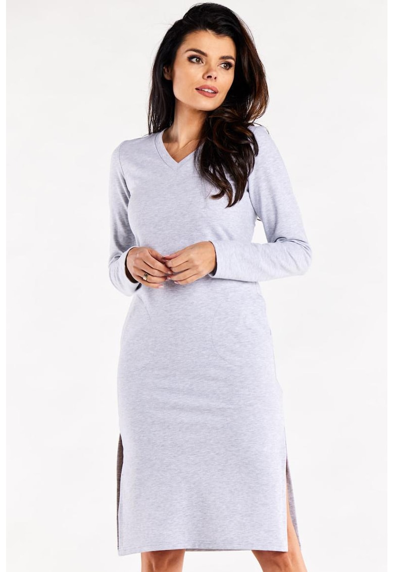 Характеристики Цвят: сив Стил: ежедневен Материал: памук Принт: без принт Кройка: прилепнала Дължина: средна Деколте: v образно Дължина ръкав: дълъг ръкав Талия: стандартна Състав Външна част: 95% памук – 5% еластан