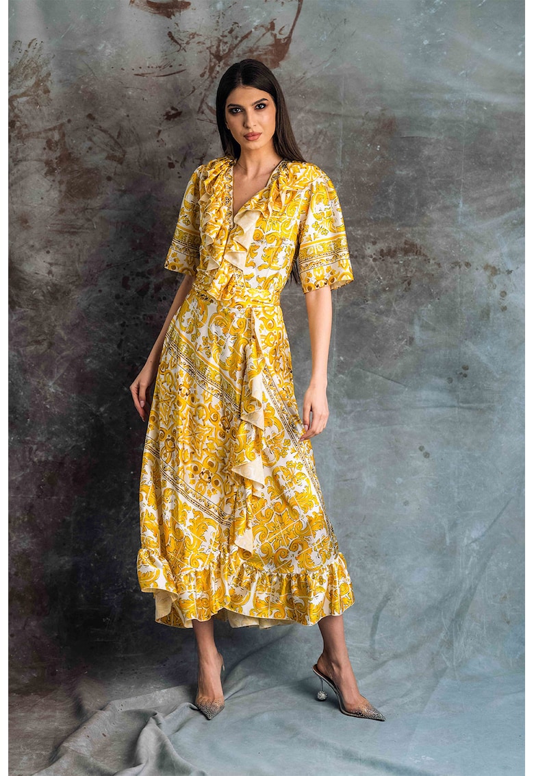 - Висококачествени материи – Рокля Isola с коприна – Жълт MIAU by Clara Rotescu е продукт изработен от най-добрите материи, осигуряващи комфорт и стил.
