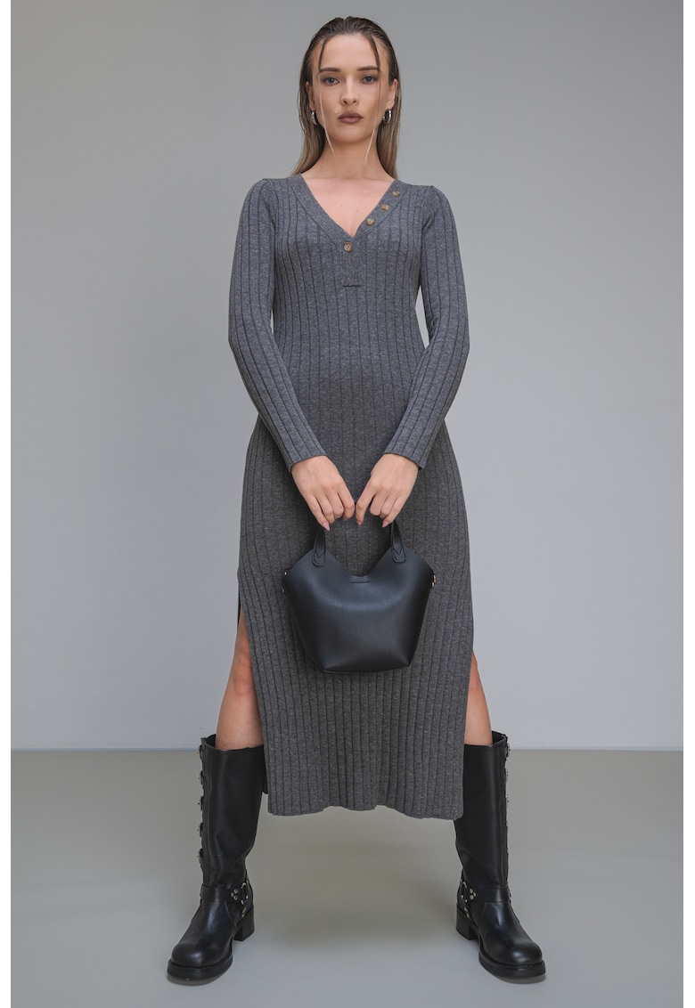 Рокля Izabel с вълна с цепки встрани – Сив Pepe Jeans London