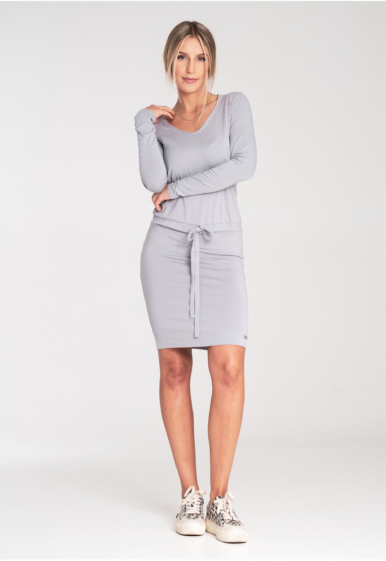 Относно Рокля M1049 – тъмно сива – дълбоко деколте – къс ръкав – вискоза на Figl