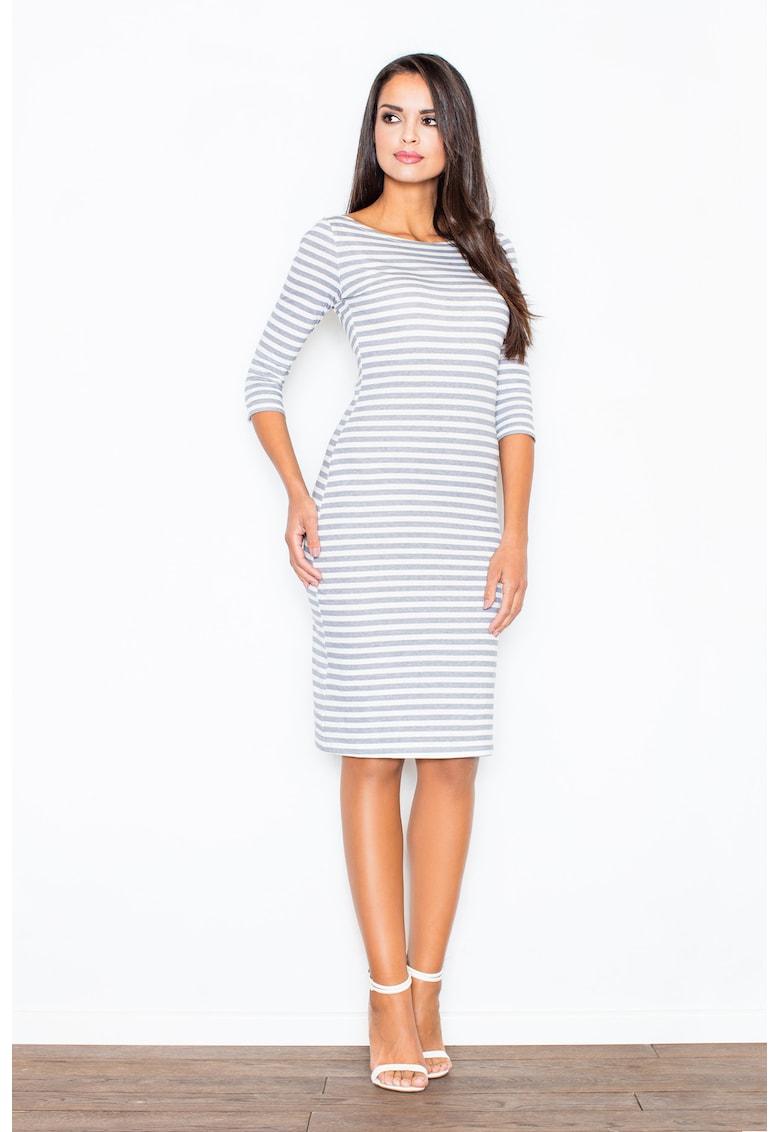 Рокля M311 миди – сива – памук – 3/4 ръкави Figl