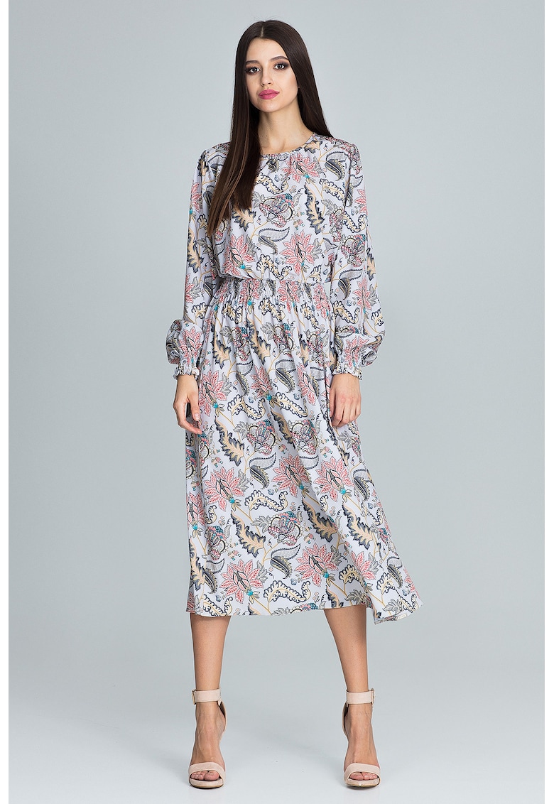 Относно Рокля M600 79 – флорален принт – миди дължина – дълъг ръкав – многоцветна – полиестер – SM на Figl