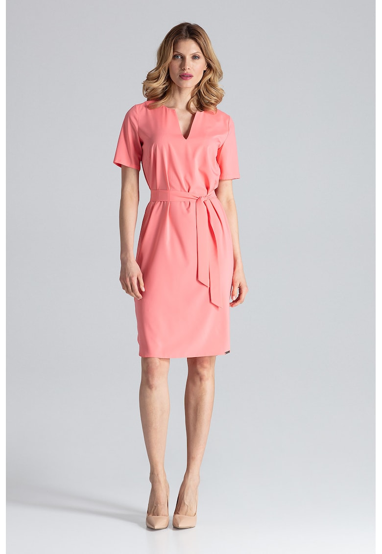 Рокля M669 Koral midi – розова – полиестер – къс ръкав Figl на ниска цена