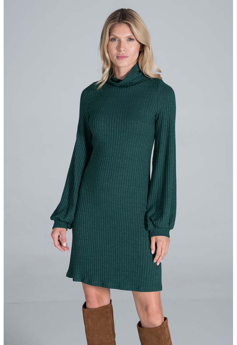 Рокля M831 – зелена – плетена – дълги ръкави – полиестер – Figl