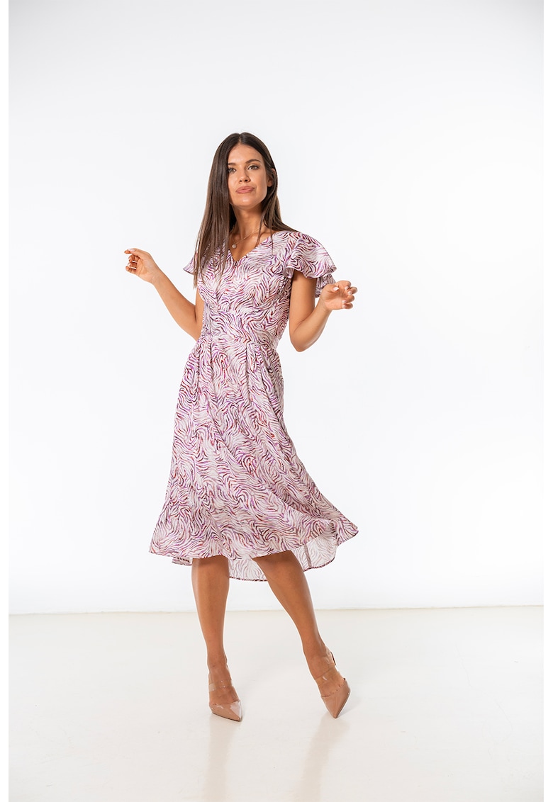 - Висококачествени материи – Рокля Sonia с принт – Бял/Лилав Hermosa е продукт изработен от най-добрите материи, осигуряващи комфорт и стил.