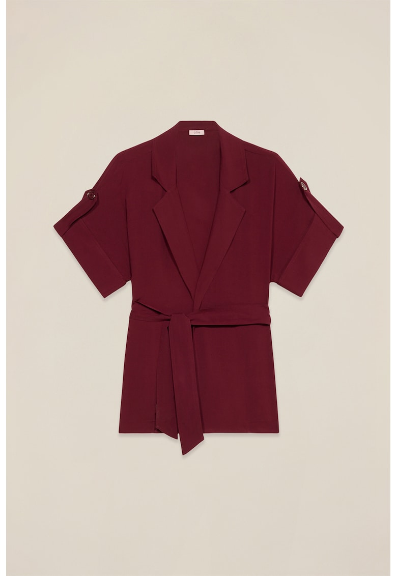 Характеристики Цвят: тъмновиолетов Стил: ежедневен Кройка: стандартна Материал: вискоза Принт: без принт Яка: ревери Дължина ръкав: къс ръкав Състав Външна част: 100% вискоза