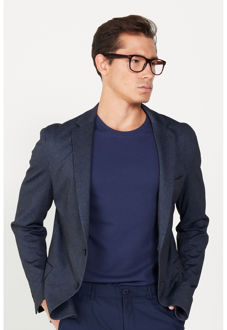 Характеристики Цвят: тъмносин Принт: без принт Материал: полиестер Стил: елегантен Кройка: стандартна Яка: ревери с цепка Дължина ръкав: дълъг ръкав Джобове: капаче Закопчаване: копчета Състав Външна част: 62% полиестер – 30% вискоза – 8% еластан