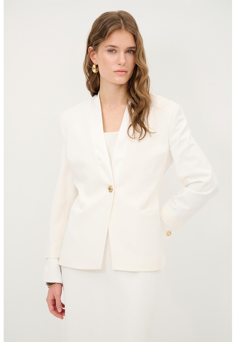 Характеристики Цвят: слонова кост Стил: елегантен Кройка: стандартна Материал: полиестер – вискоза Принт: без принт Яка: шал-яка Дължина ръкав: дълъг ръкав Детайли: размерът е по-малък от стандартния – затова препоръчваме да изберете по-голям размер.1 Закопчаване: копчета …