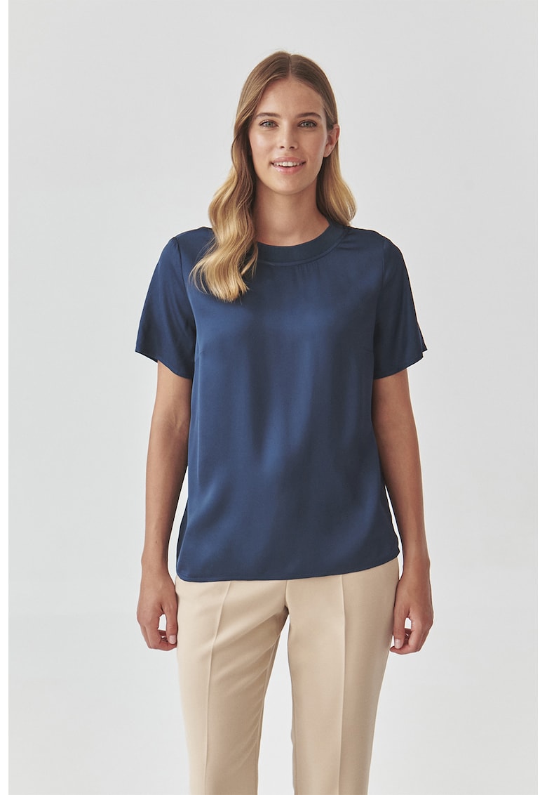 Сатинирана блуза с къси ръкави – Тъмносин Tatuum