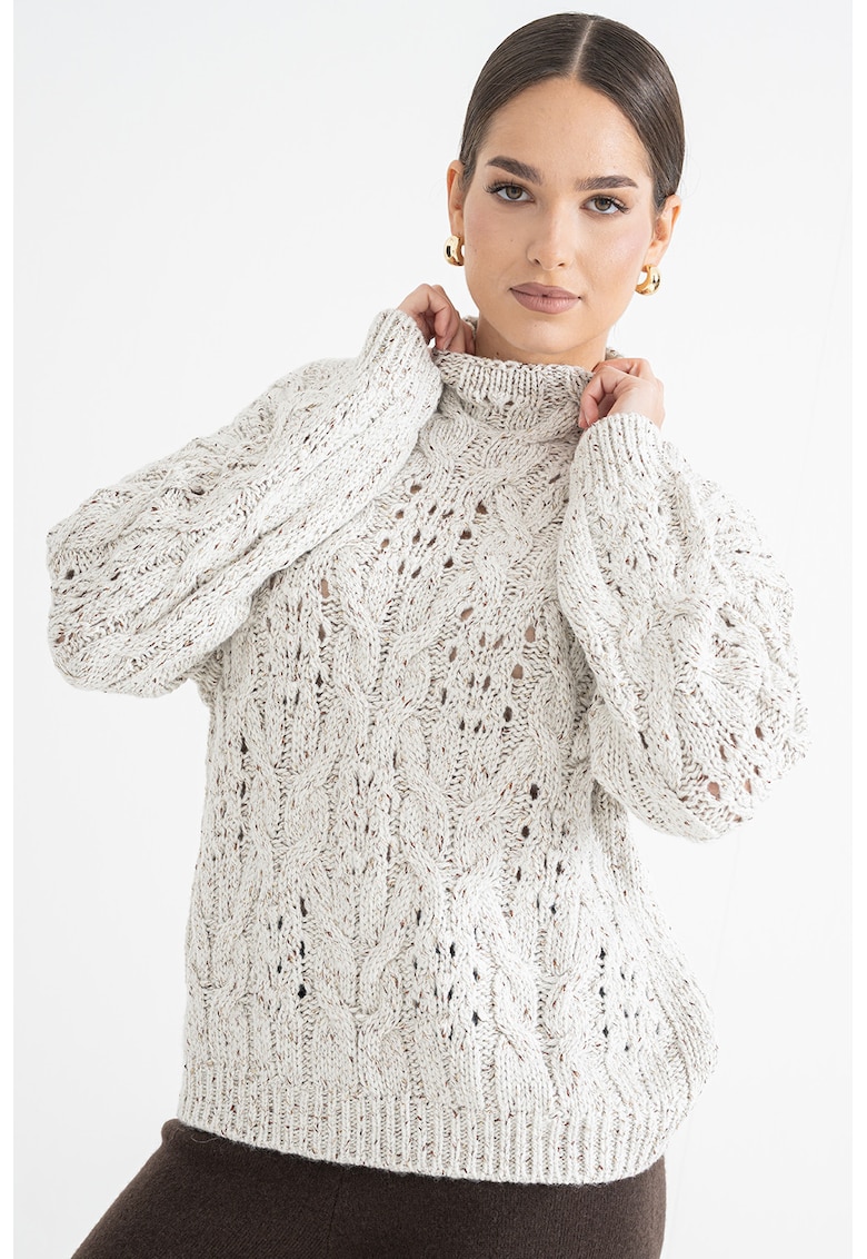 Свободен плетен пуловер с перфорации – Златист/Мръснобял Stefanel