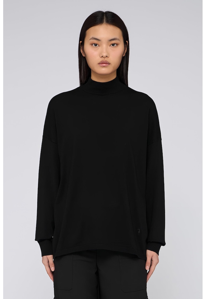Свободен пуловер със средновисока яка – Черен Trussardi