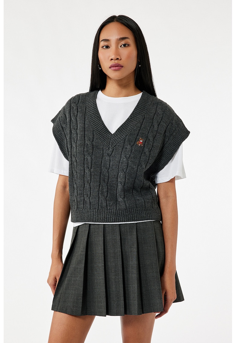 Характеристики Тип продукт: пуловер Цвят: въглен сиво Принт: без принт Материал: акрил Модел: v-образно деколте Кройка: свободна Закопчаване: без закопчаване Дължина ръкав: къс ръкав Състав Външна част: 100% акрил