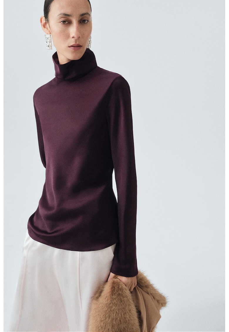 Характеристики Цвят: тъмновиолетов Принт: без принт Стил: ежедневен Кройка: свободна Закопчаване: без закопчаване Материал: полиестер Деколте: поло Дължина ръкав: дълъг ръкав Състав Външна част: 100% полиестер – яка: 100% органичен памук