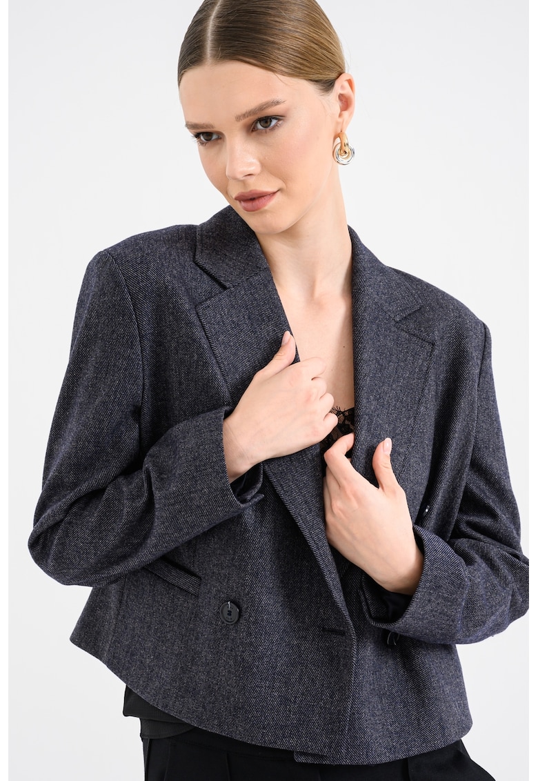 Характеристики Цвят: тъмносин Стил: елегантен Кройка: свободна Материал: вълна Принт: без принт Дължина ръкав: дълъг ръкав Състав Външна част: 57% полиестер – 26% вълна – 15% вискоза – 2% еластан Информация за модел Моделът е облечен с размер S/36 EU. Размер на модела: 176 cm …
