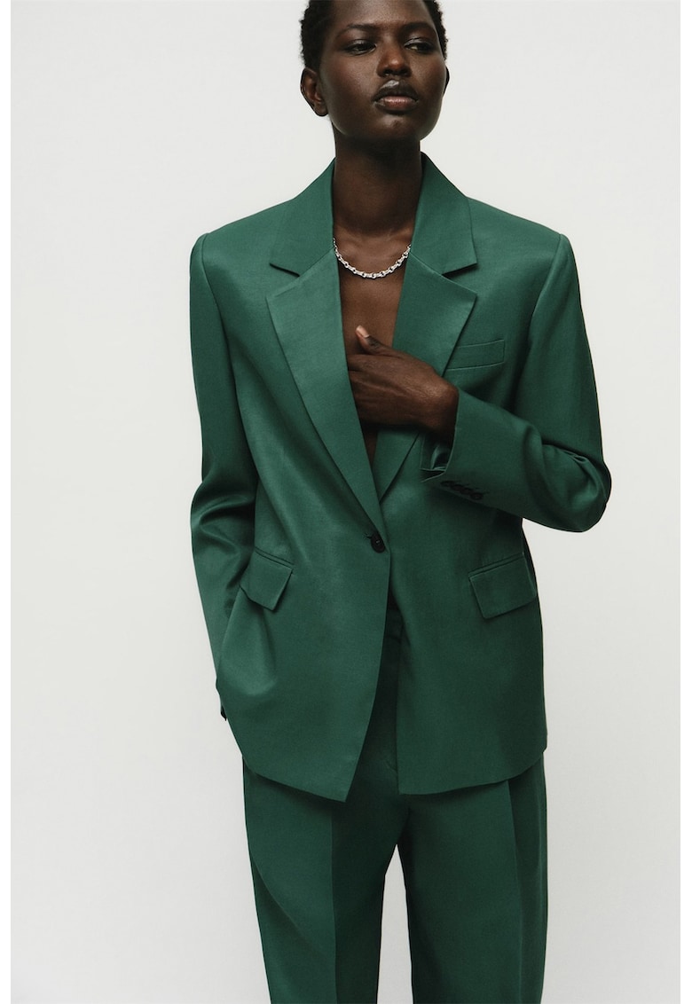 Свободно сако с лен – Тъмнозелен Mango