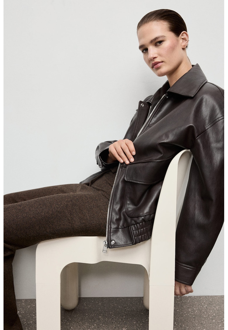 Свободно яке от еко кожа – Тъмнокафяв Mango