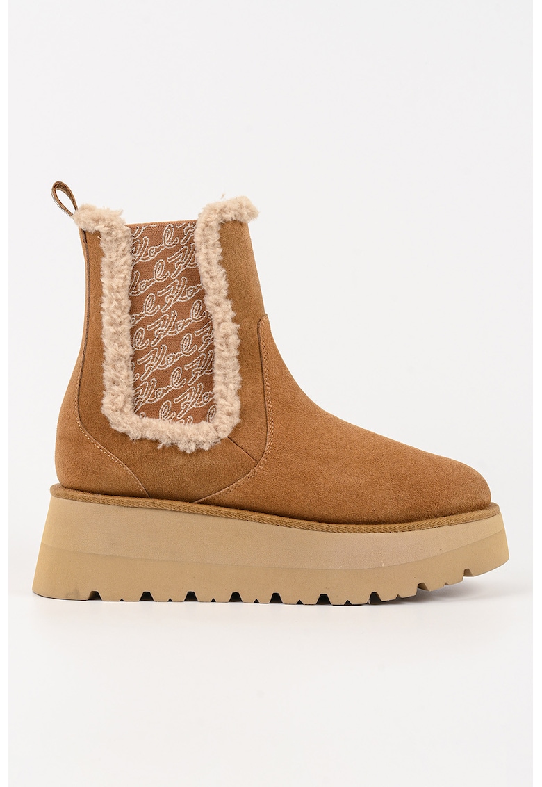Скосени велурени боти Chelsea – Карамел Karl Lagerfeld