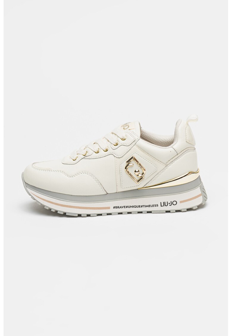 Информация за Скосени кожени маратонки с лого – Златист/Мръснобял Liu Jo: