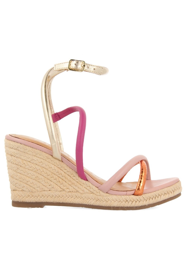 Характеристики Тип: с платформа Цвят: розово Материал: eстествена кожа Принт: без принт Стил: ежедневен Тип на подметката: скосена платформа Детайли: презрамки с опция за носене по различен начин Закопчаване: катарама Състав Горна част: кожа Материал интериор: кожа …