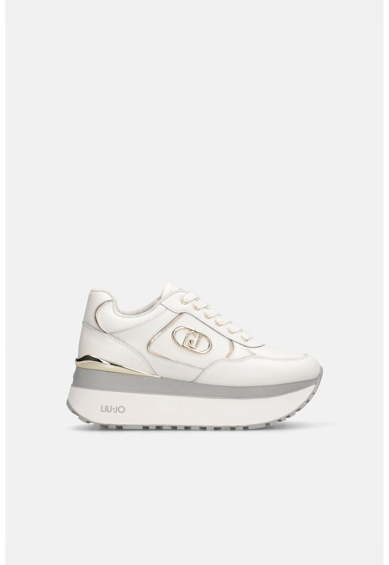 Скосени спортни обувки от кожа и еко кожа – Бял/Сив Liu Jo