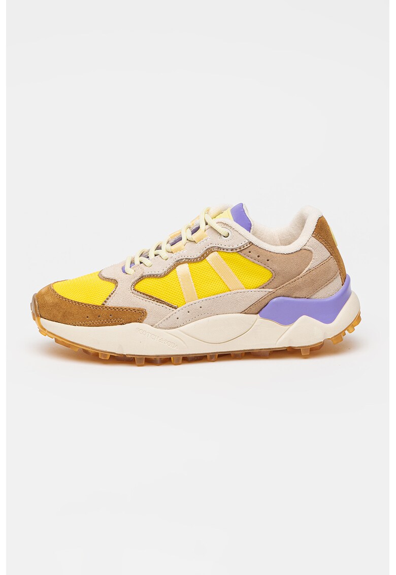 Скосени спортни обувки с велур – Кафяв/Жълт/Виолетов Scotch Soda