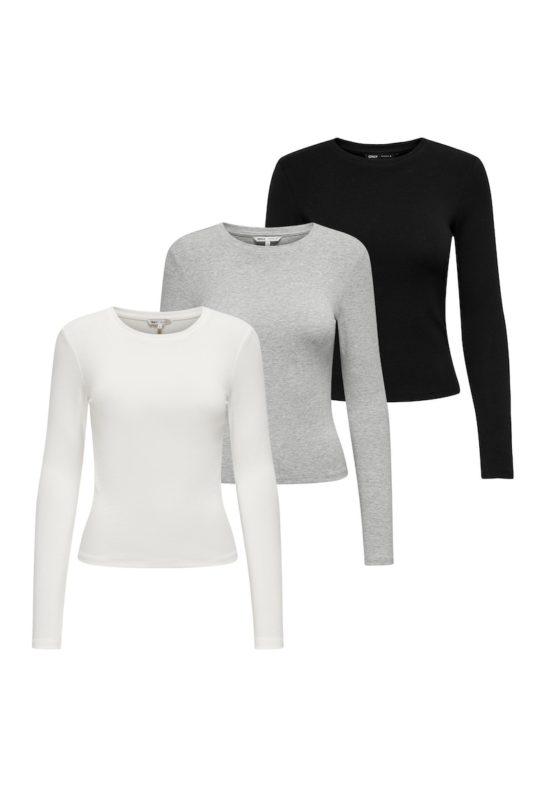 Слим блузи – 3 броя – Слонова кост/Черен/Сив Only