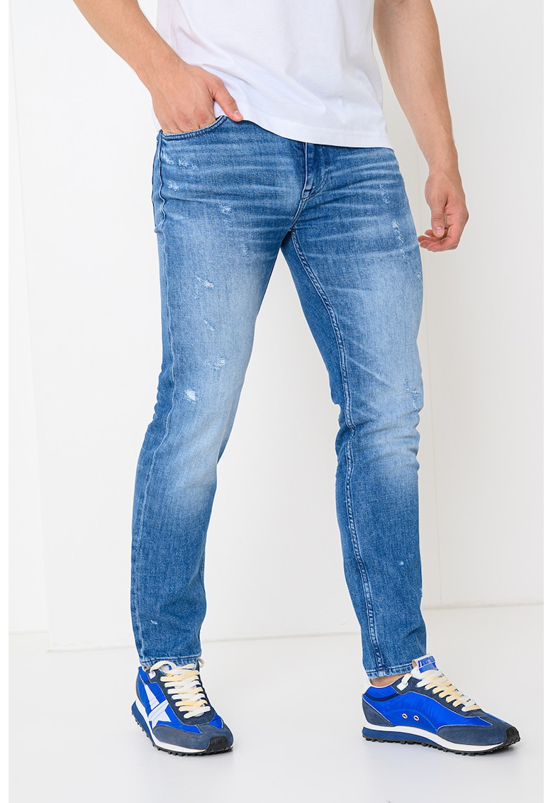 Слим дънки със захабени зони – Лавандула BOSS