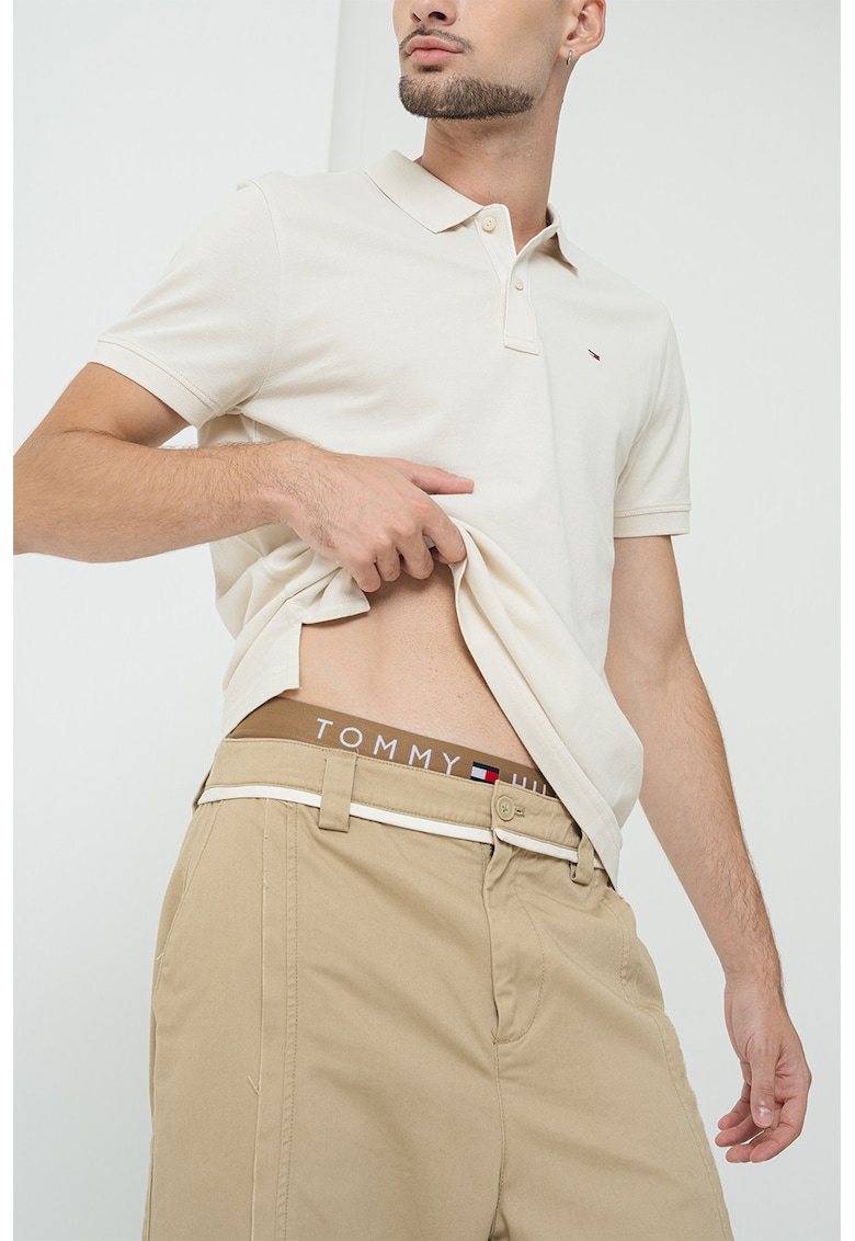 Относно Слим памучна тениска с яка – Светло бежово Tommy Jeans