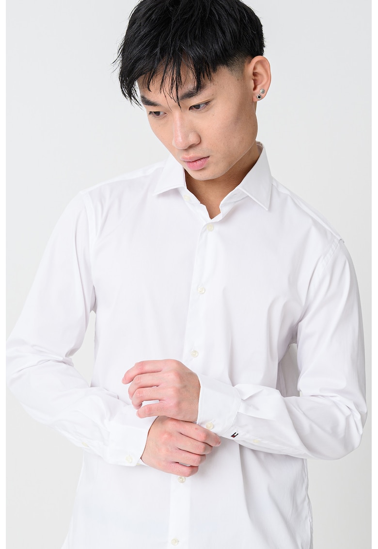 Слим риза с органичен памук с дълги ръкави – Бял Tommy Hilfiger