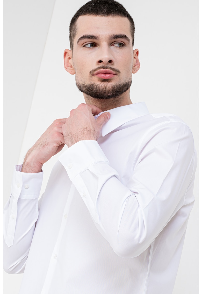 Характеристики Цвят: бял Материал: синтетичен – памук Принт: без принт Стил: ежедневен Кройка: по тялото Яка: класическа Дължина ръкав: дълъг ръкав Закопчаване: копчета Състав Външна част: 96% памук – 4% еластан Информация за модел Моделът е облечен с размер M. Размер на …