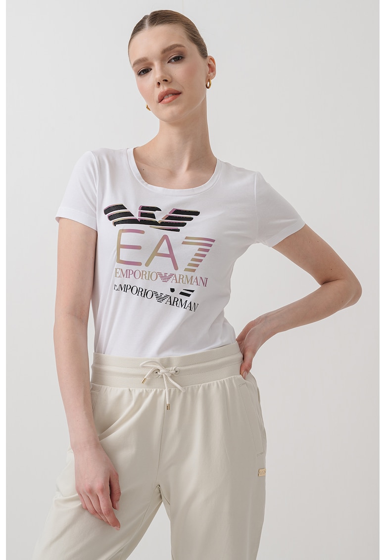 Слим тениска с лого – Бял EA7