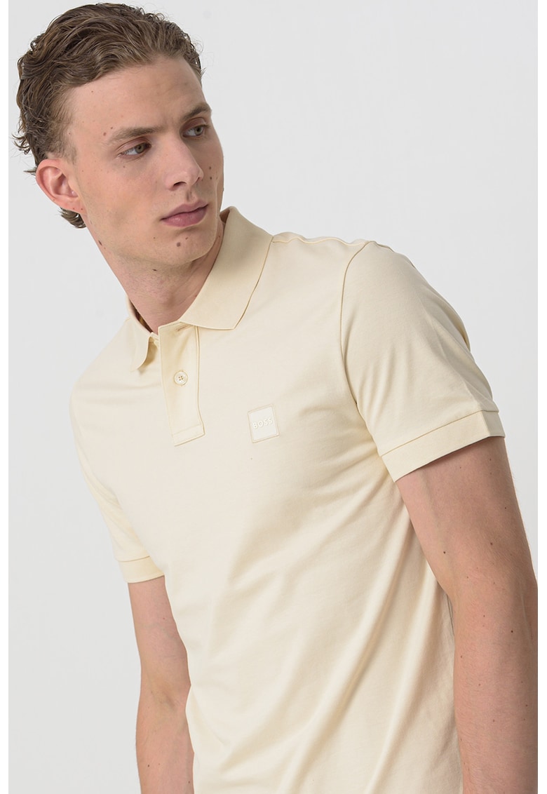 Слим тениска Passenger с яка – Светло бежово BOSS