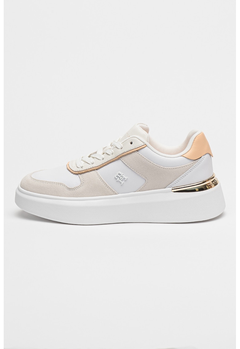 Оригинални Спортни обувки от кожа с овален връх – Пепеляво сиво/Праскова/Бял Tommy Hilfiger