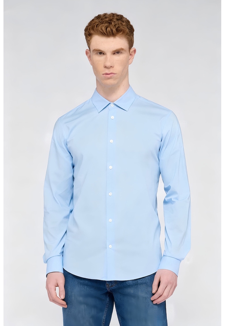 Характеристики Цвят: пастелносин Материал: памук – еластан Принт: без принт Стил: ежедневен Кройка: стандартна Яка: класическа Ръкави: маншети Дължина ръкав: дълъг ръкав Закопчаване: копчета Състав Външна част: 97% памук – 3 еластан