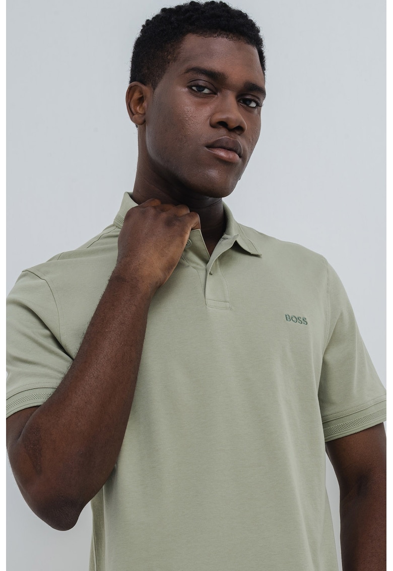 Стандартна тениска с яка и бродирано лого – Светлозелен BOSS