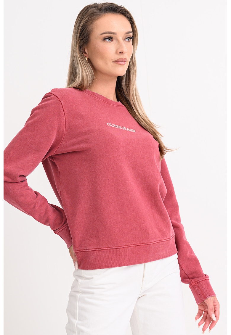 Суитшърт с овално деколте и лого – Бледочервен GUESS JEANS
