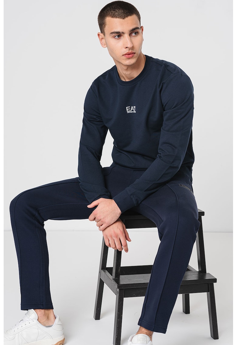 Суитшърт с овално деколте и лого – Бял/Тъмносин EA7