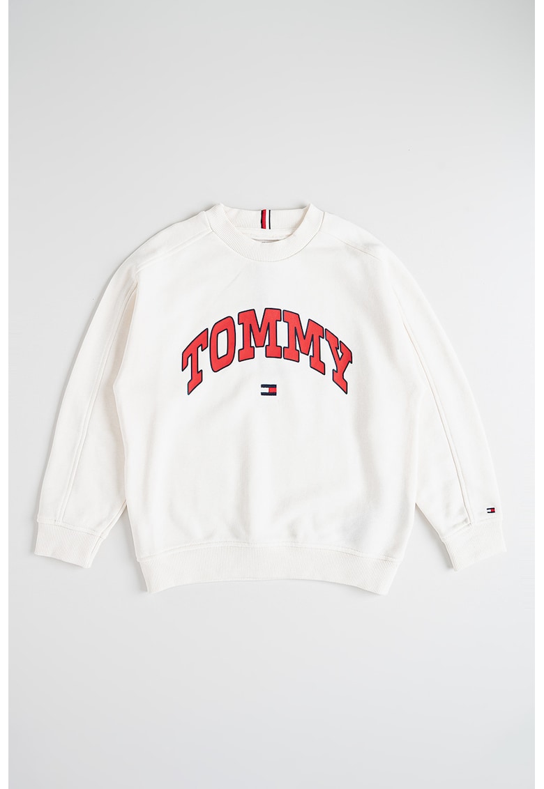 Суитшърт с овално деколте и лого – Червен/Слонова кост Tommy Hilfiger