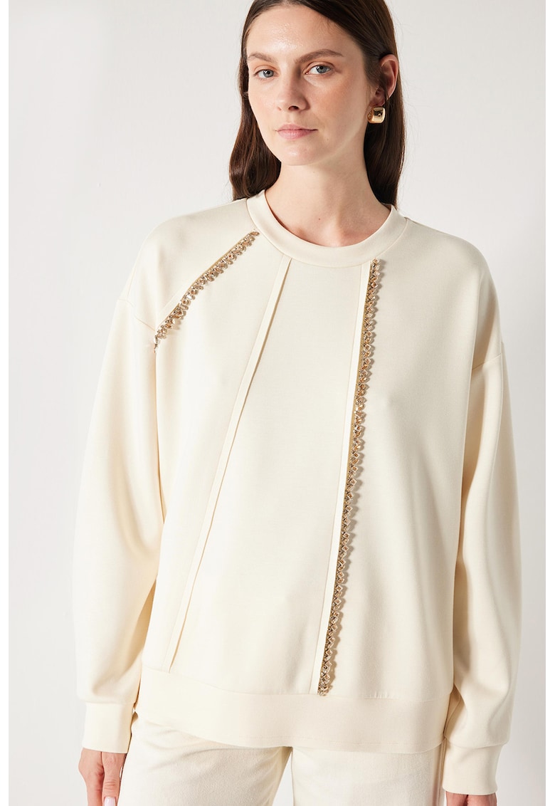 Суитшърт с паднали ръкави и декоративни камъни – Златист/Крем Ipekyol