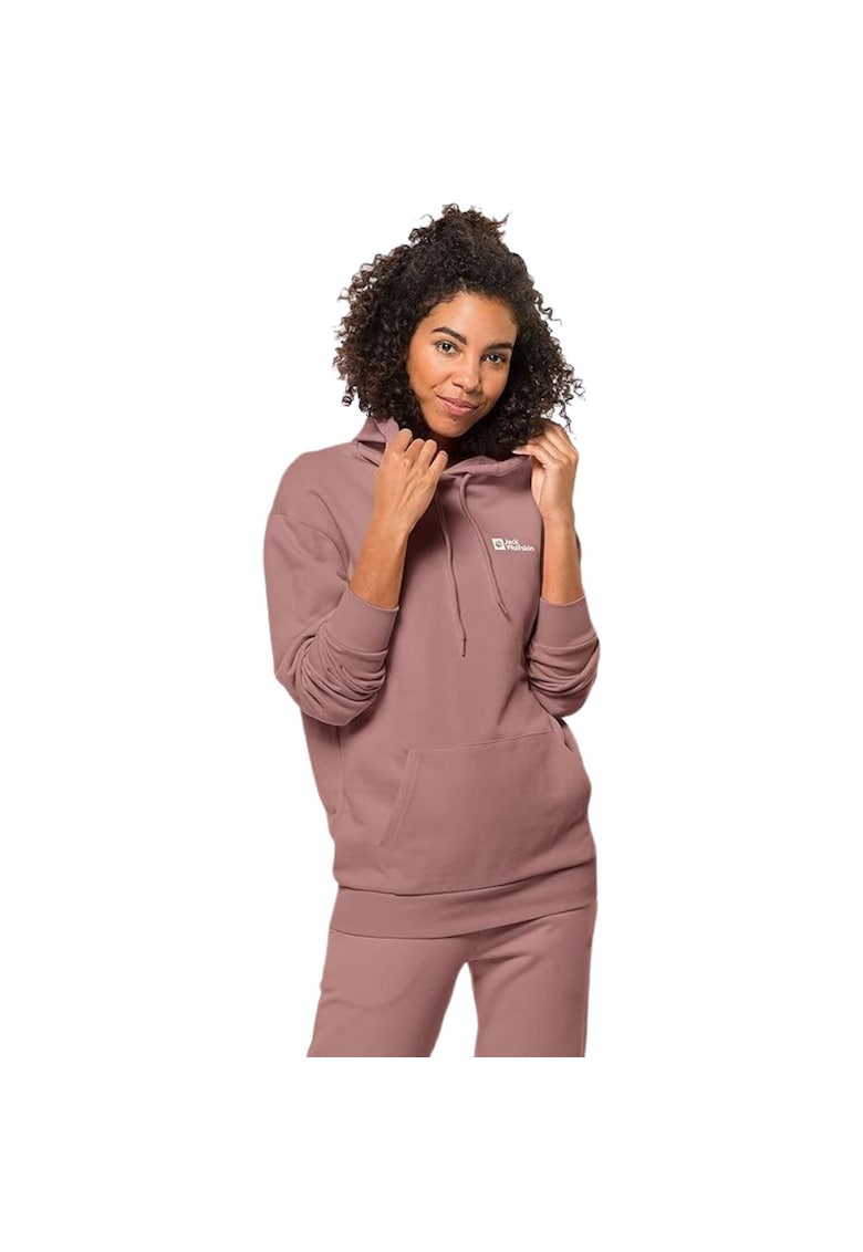 Относно Суичър за дами спортен – розов – органичен памук – качулка – джоб тип кенгуру – Jack Wolfskin