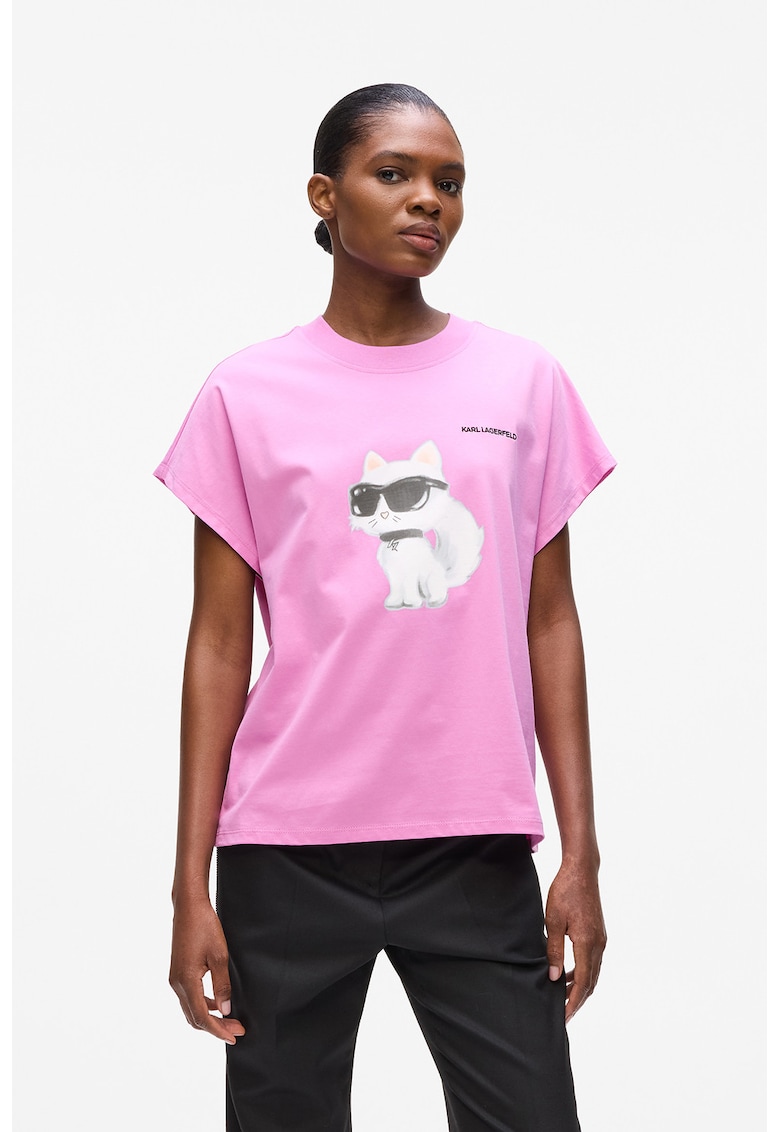 Тениска от органичен памук с графика – Бял/Розово Karl Lagerfeld