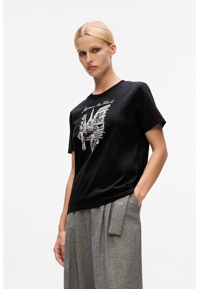 Относно Тениска от органичен памук с фигурален принт – Бял/Черен Karl Lagerfeld